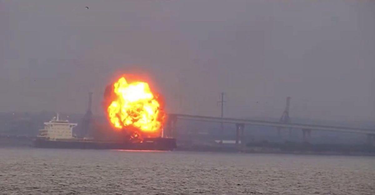 Взрыв на грузовом судне попал на видео — Интересные новости