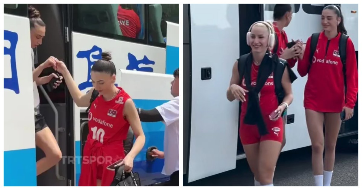 Игроки женской команды наглядно продемонстрировали силу поддержки: выходя из автобуса, каждая спортсменка подавала руку следующей, превращая обычный момент в красивый пример единства и заботы друг о друге.