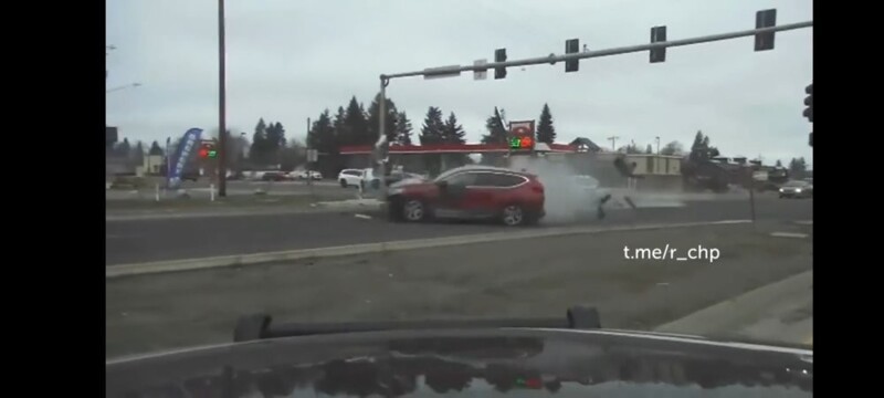 Полиция штата Айдахо опубликовала видео аварии, где виновник проезжал на красный со скоростью 111 миль/ч (179 км/ч).