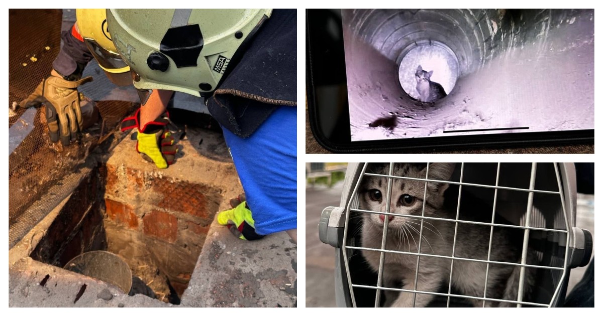 Женщины позвонили в 112, на место ЧП выдвинулись спасатели. Работники экстренной службы установили, что детеныш провалился в отверстие вентиляции, которое выходило на крышу пристройки. С помощью опущенной в вентиляцию камеры они увидели, что по коробу мечется котенок.