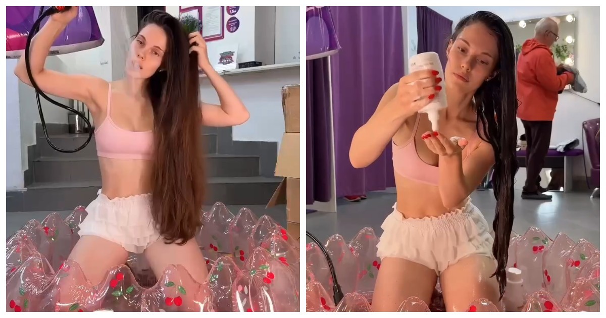 В пункте выдачи: девушка устроила тест-драйв шампуня с душем и мини-бассейном — Интересные новости