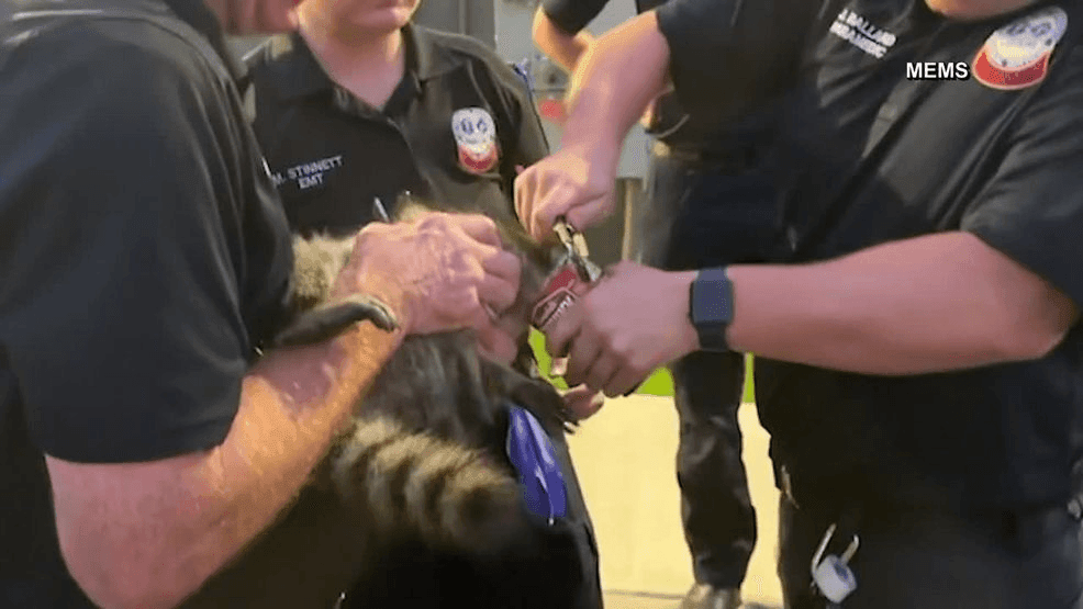 В США вызвали целую группу спасателей, чтобы достать енота с банкой на голове — Интересные новости
