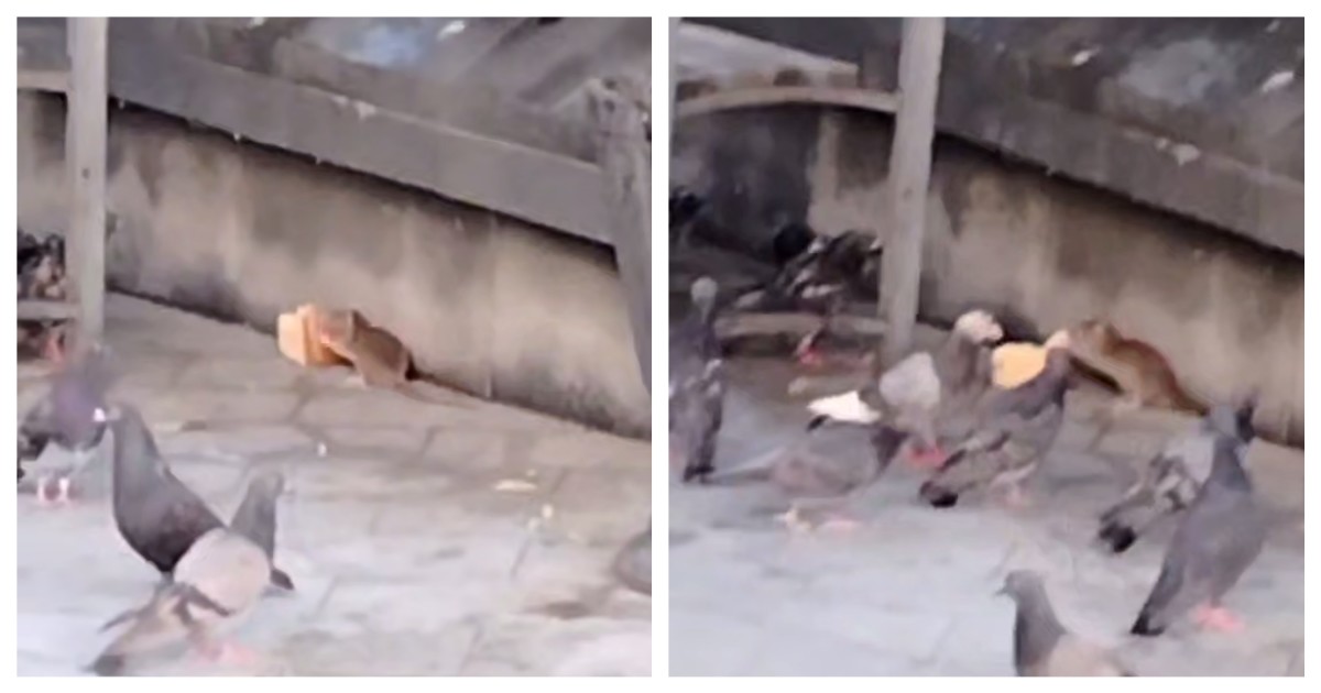 Голуби и крыса не поделили кусок хлеба — Интересные новости