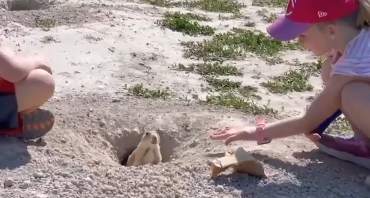 Девочка решила угостить луговую собачку. Она положила орех на руку и поднесла к норе зверька. Однако у грызуна был план получше.