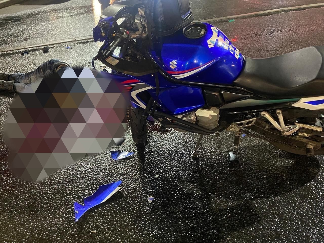 Как видно на записи, женщина на мотоцикле Suzuki GSX650F (номер 9010АС78) выехала на перекресток по правому ряду в момент, когда на светофоре желтый сигнал сменился красным. Из-за стоявшего в левом ряду троллейбуса, она не заметила встречный автомобиль такси Kia K5 (госномер К117ОЕ53 — Новгородская область), который в это время пошел на разворот. То ли из-за резкого торможения на мокрой дороге, то ли намеренно, пытаясь избежать удара, мотоциклистка упала с седла буквально за секунду до столкновения с машиной. У неё даже слетел с головы шлем.