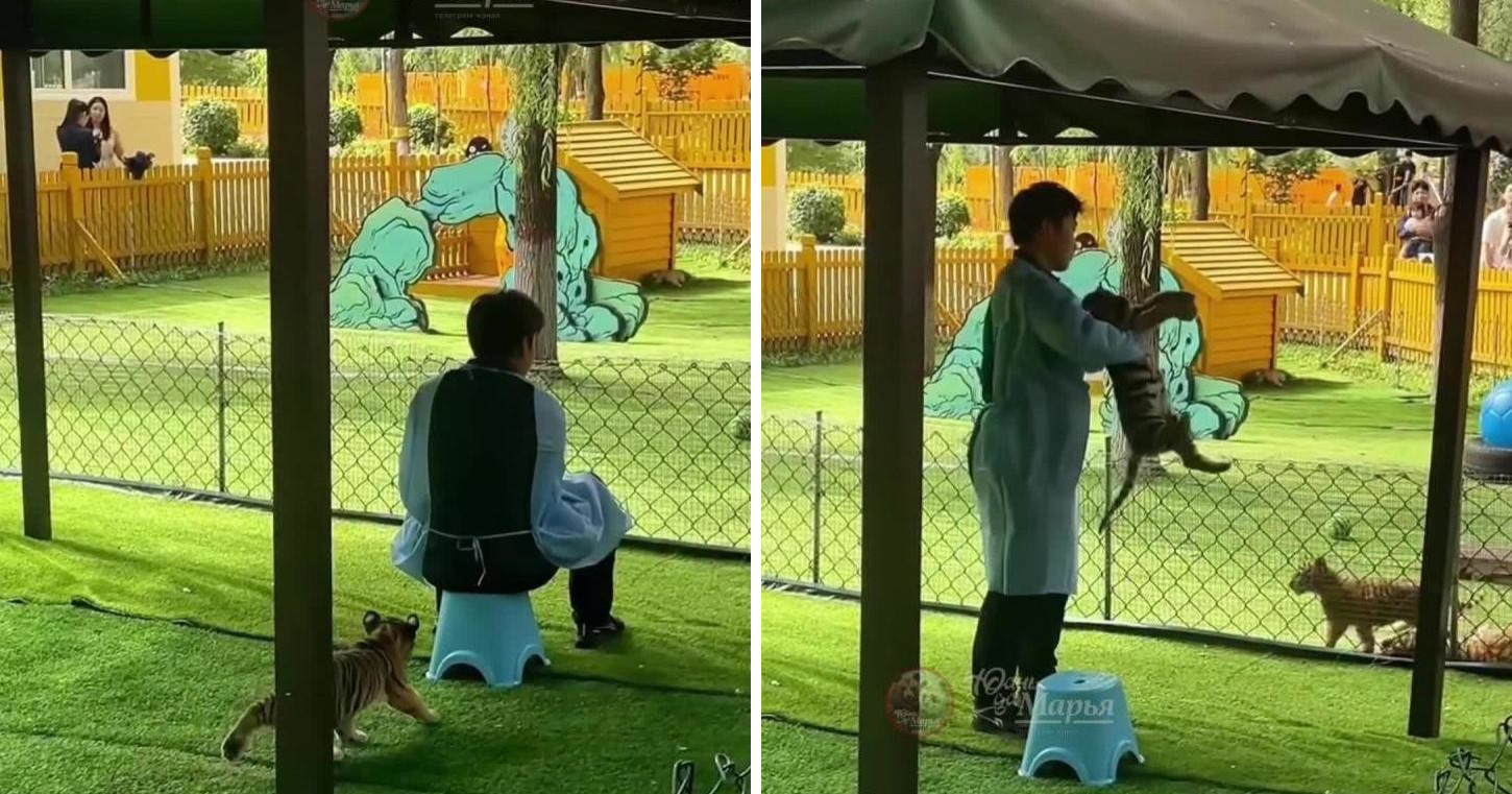 Леденящий душу момент произошел в Парке амурских тигров в Харбине — крупнейшем в мире природном заповеднике для амурских тигров. На площади 1,2 миллиона квадратных метров обитает более 600 крупных кошек. Здесь тигрята растут в полудиких условиях под присмотром смотрителей.