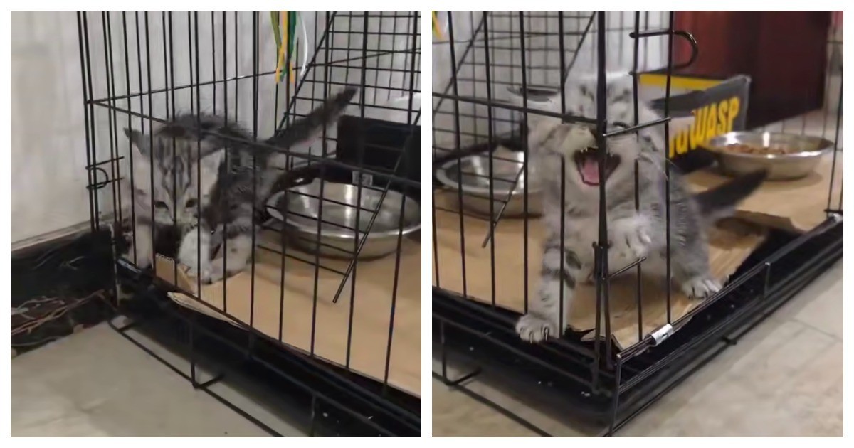 Забавные попытки котёнка выбраться из клетки — Интересные новости