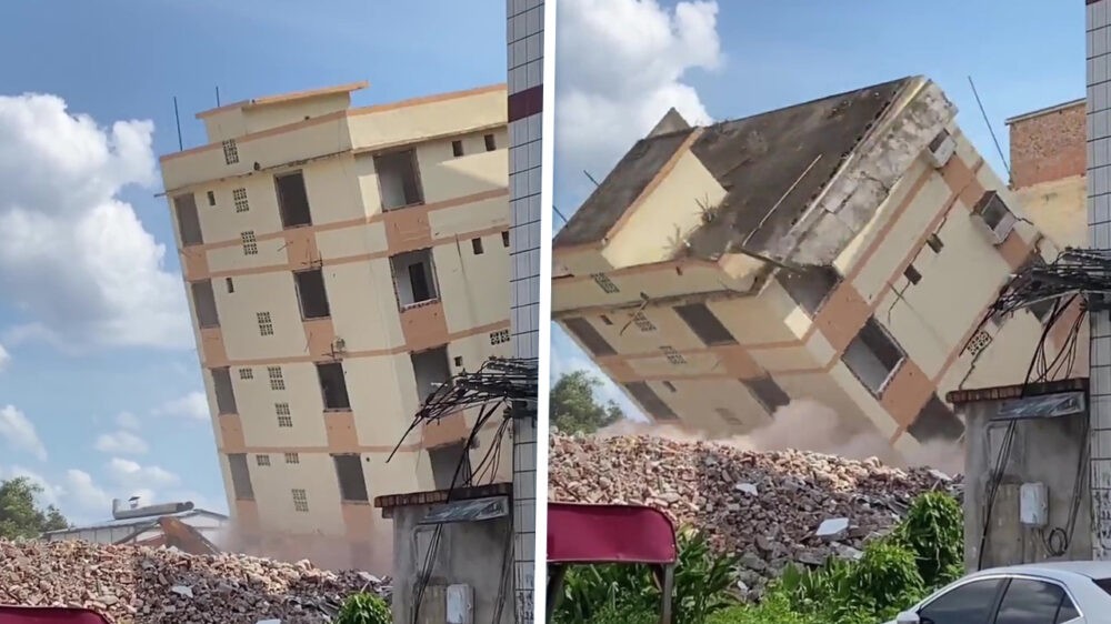 Здание рухнуло на экскаватор во время сноса — Интересные новости