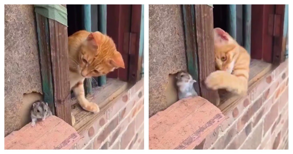 Рыжий кот решил поймать хомяка. Когда домашний питомец достиг своей цели, он не стал есть грызуна, а сделал кое-что неожиданное.