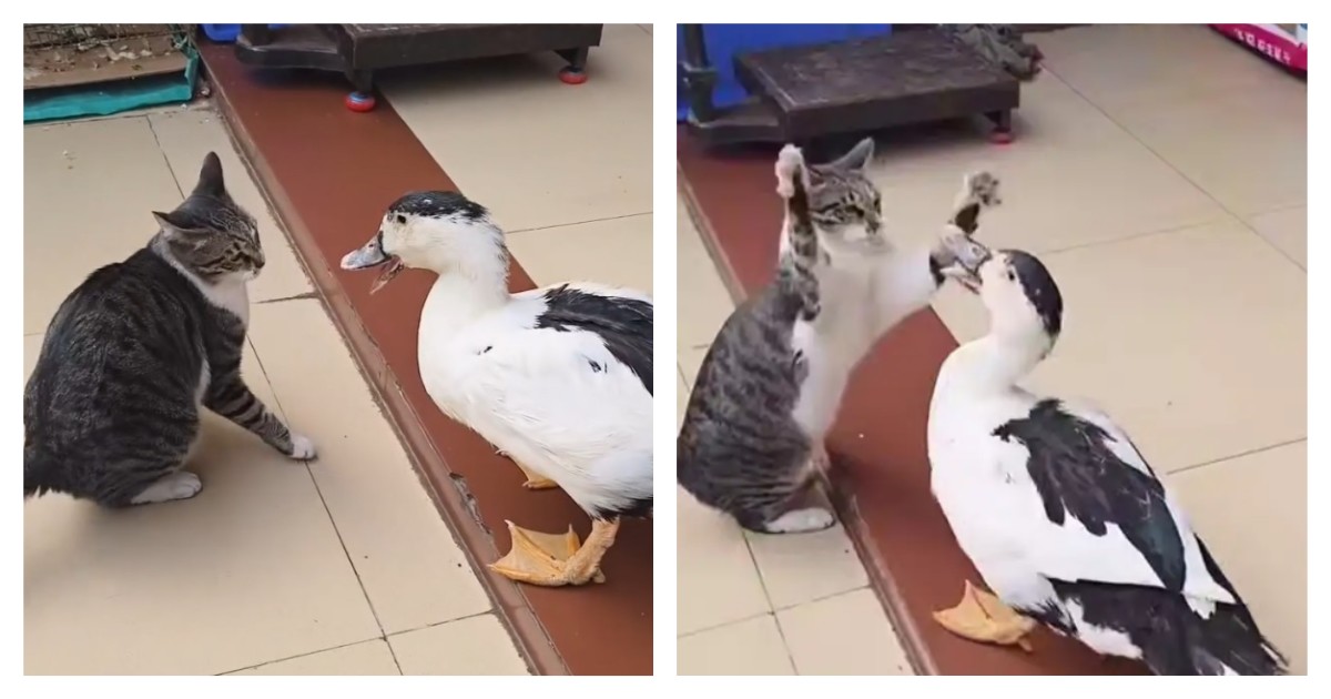 Кошка против утки: забавный поединок двух питомцев — Интересные новости