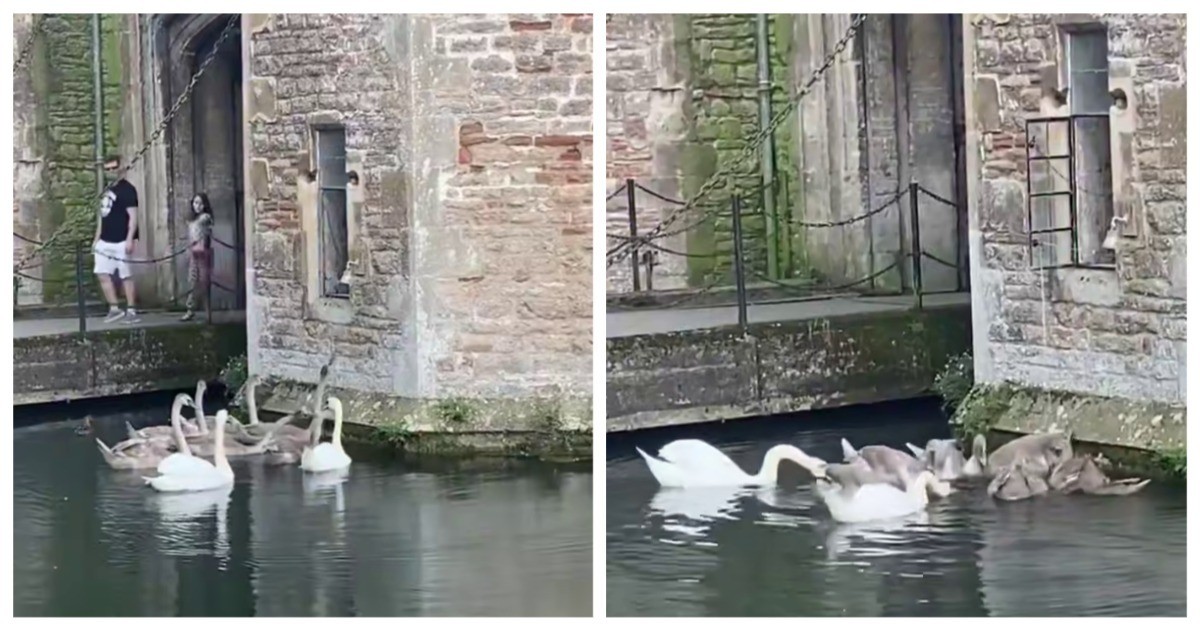 Благородных птиц у рва резиденции держат с XIX века — и когда-то давно местные детишки научили их дергать за верёвку, привязанную к колокольчику у окна кухни. С тех пор это умение лебеди передавали из поколения в поколение — и в итоге они стали даже отдельной достопримечательностью дворца.