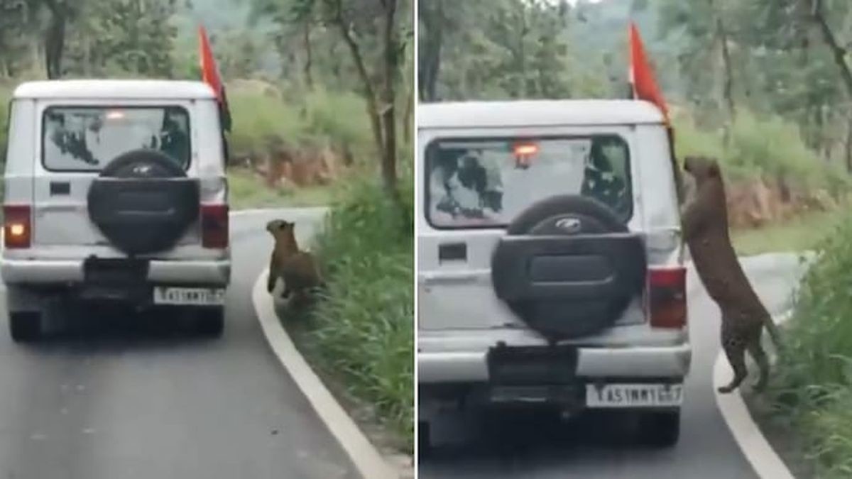 На кадрах видно, что хищник сидел у обочины в кустах. В едущем мимо автомобиле было открыто окно, из которого высовывалась детская рука. Леопард заметил это и помчался за джипом. Догнав его, хищник попытался вцепиться в руку мальчика.