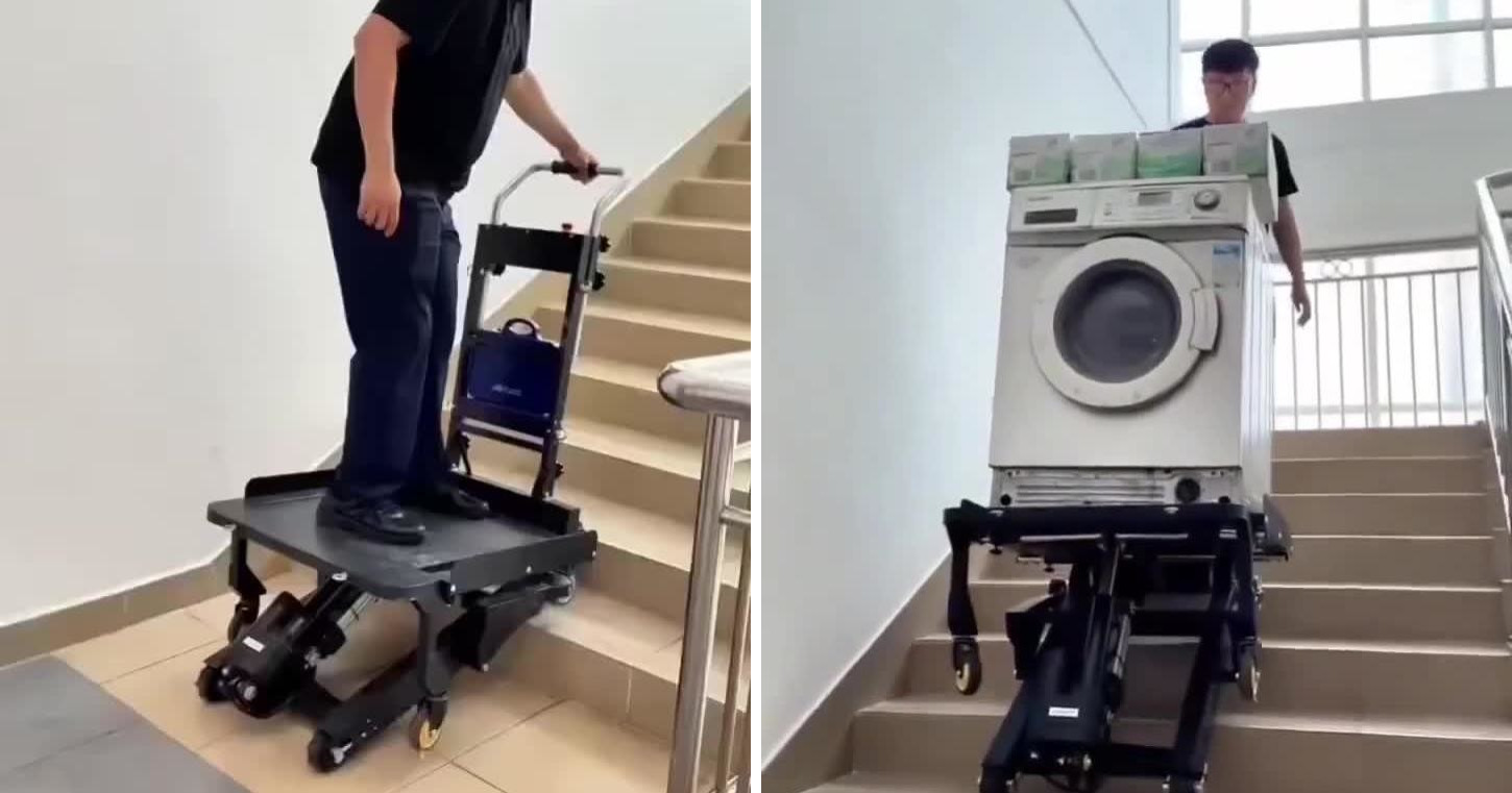 В Китае представили гусеничный электроподъёмник, который может поднимать по лестницам различные грузы весом до 200 кг. Устройство оснащено системой автоматической балансировки, благодаря которой груз остаётся в устойчивом положении даже при крутом наклоне.