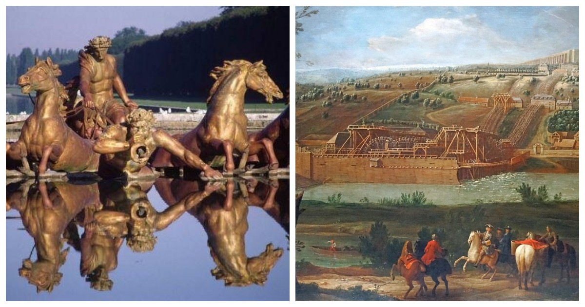 Неподалёку от дворца, у двух водных партеров, расположены скульптуры, изображающие схватки диких зверей: лев, побеждающий кабана, тигр, усмиряющий медведя, и гончая, повергающая оленя. Из пасти каждого животного вода бьёт в бассейн. Фонтан Дракона (на самом деле змея Питона) один из старейших в Версале, его струи взмывают на 27 метров. А самый величественный, фонтан Латоны, иллюстрирует сцену из «Метаморфоз» Овидия: четырёхъярусная композиция украшена фигурами лягушек, ящериц и черепах.