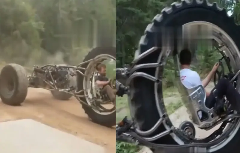 В переднее колесо встроена кабина, а задняя часть позаимствована от Humvee и дополнена 46-дюймовыми шинами.Сердцем конструкции стал турбодизельный двигатель VW TDI, а подруливающая задняя ось обеспечивает невероятную маневренность этого чуда-транспорта даже на сложном бездорожье. Кстати, разработчики продолжают улучшать конструкцию.