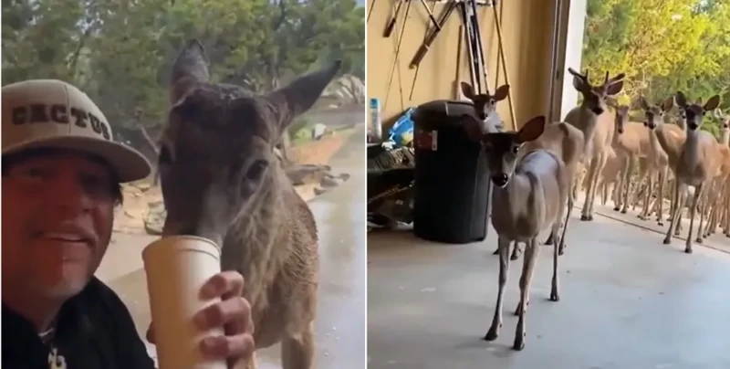 Американец заметил животное и решил накормить его вкусностями. Однако на следующий день произошло неожиданное — в гараже уже стояло целое стадо животных, которых привел тот самый рогатый житель леса.