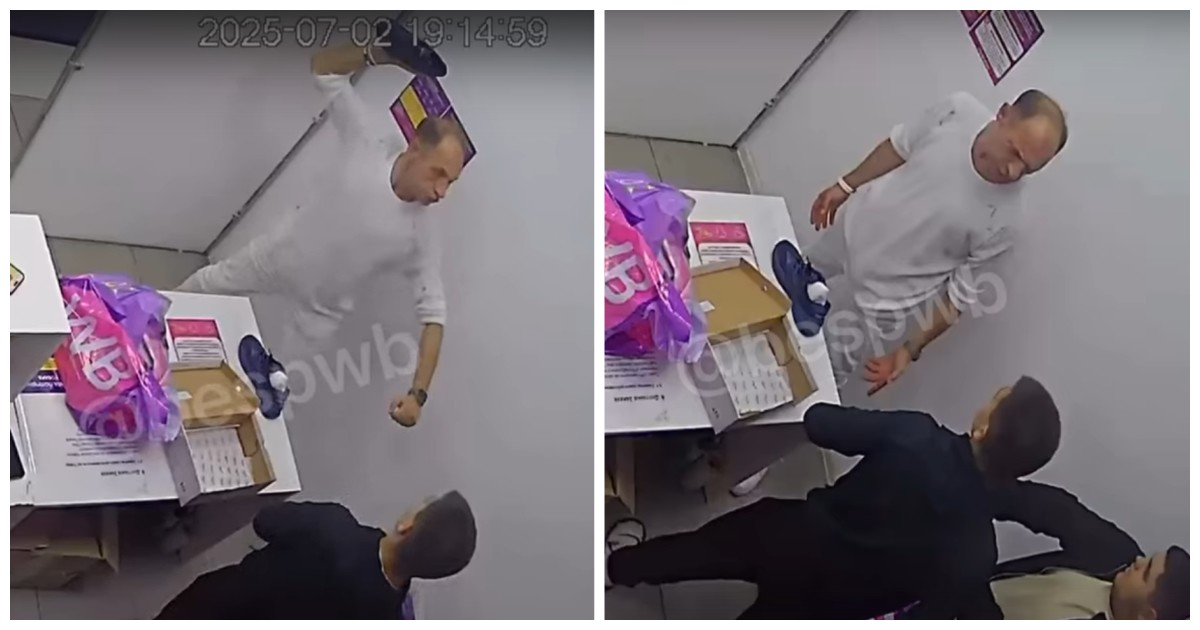 Мужчина швырнул обувь в сторону работников и начал провоцировать сотрудника. Драки удалось избежать благодаря вмешательству других мужчин.