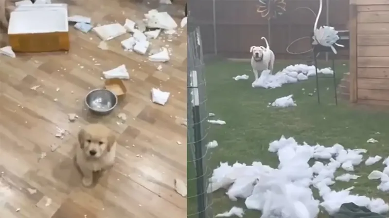 Эти кадры доказывают, что некоторые собаки способны за мгновенье превратить квартиру в зону стихийного бедствия с грацией слона в посудной лавке. Один неловкий прыжок, и вот уже шторы превращаются в тряпки, а подушки — в снегопад из перьев. Особенно впечатляют «осознанные» диверсии, когда песики, пойманные с поличным, демонстрируют явное понимание содеянного без тени раскаяния.