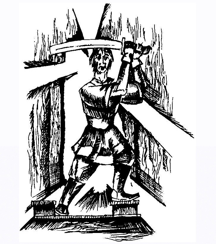 Опьяненная кровью и легкой добычей, бесчинствовала и радовалась вражья орда. И вдруг в дверях одной избы вражеских воинов встретила блеснувшая, как молния, сабля. Нукеры отступили.