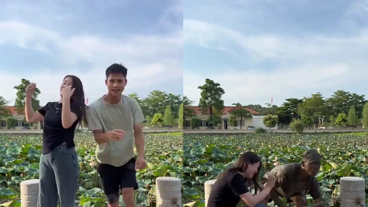 Во время съемок парень по неосторожности оступился и угодил прямо в грязное болото, испачкавшись с головы до ног.