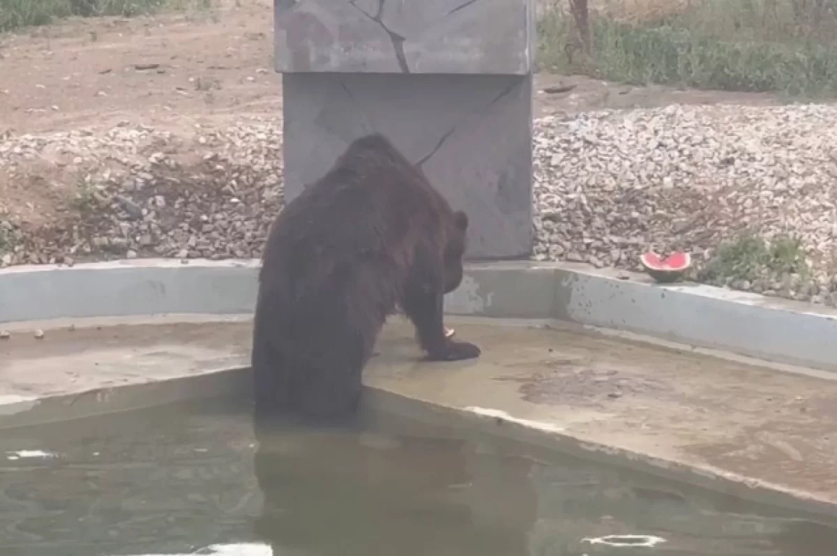 Позже в соцсетях зоопарка выложили видео, на котором видно, что медведь доел арбуз и потихоньку выбрался на берег.