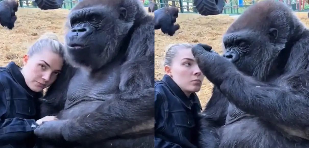 Смотрительница зоопарка провела небольшую «шпионскую» операцию в вольере с гориллами. Она легла рядом с самкой гориллы, а потом, оглянувшись на ее «супруга», начала по-тихому давать ей угощения. Горилла стала действовать как опытный агент — принимала еду с невозмутимым видом.
