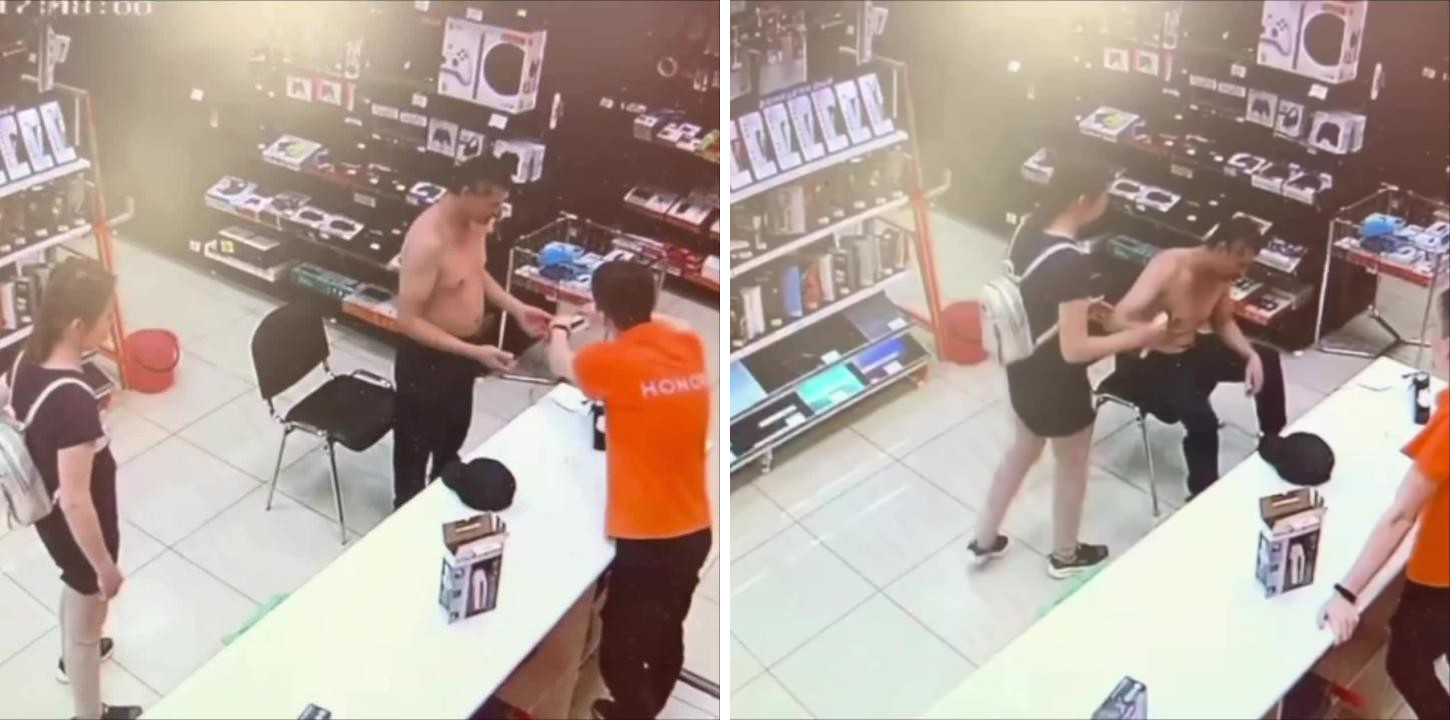 Продавец разрешил клиенту проверить машинку для стрижки волос прямо в магазине. В роли парикмахера выступила уборщица магазина.