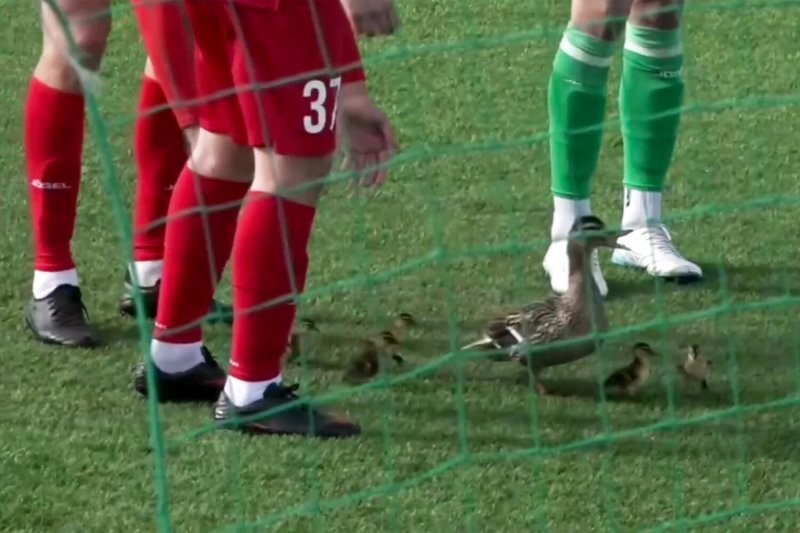 Уточка с утятами пришли посмотреть футбольный матч кубка МФС «Приволжье».Пернатое семейство решило занять места прямо в эпицентре — чтобы лучше было видно. Но их вежливо попросили пересесть на трибуны.