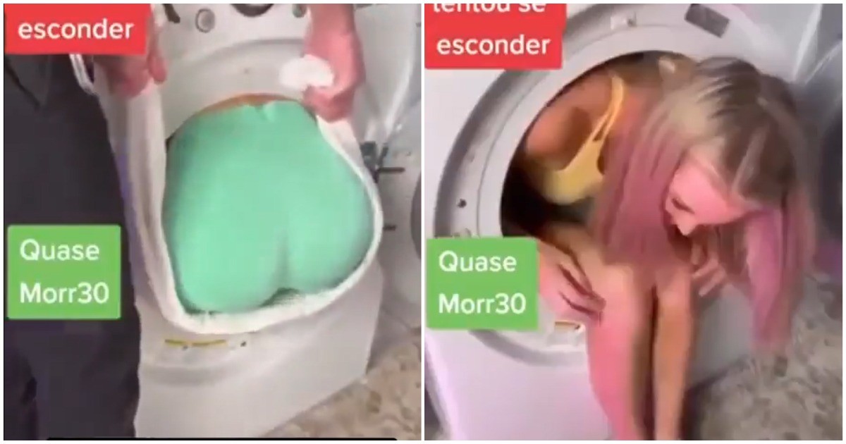 Молодая блогерша в погоне за виральным контентом умудрилась полностью залезть в барабан стиральной машины, но выбраться обратно у нее не получилось — гибкости позвоночника хватило только на вход.