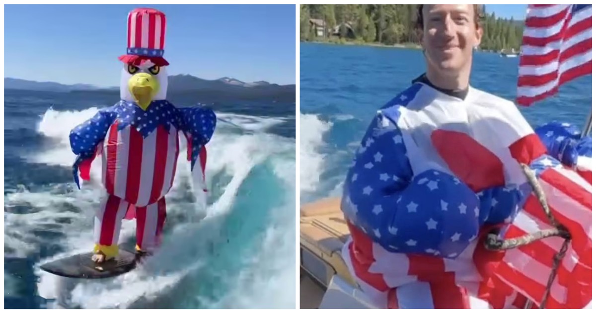 Цукерберг прокатился на серфе в костюме орлана на День независимости США