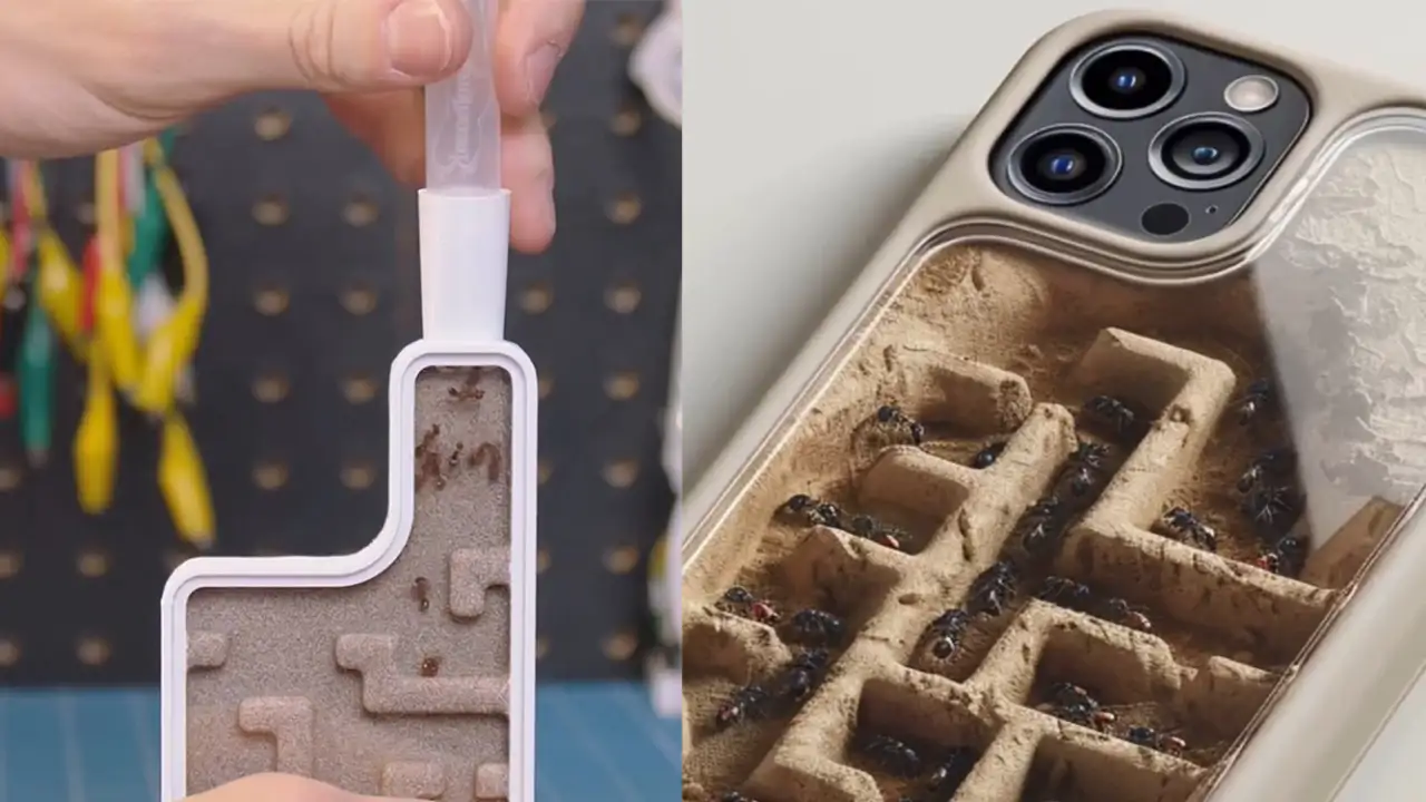 Пока одни борются с зависимостью от телефона, этот парень решил превратить гаджет в часть экосистемы. Буквально. Он создал чехол с настоящей муравьиной фермой, представляющей собой небольшую прозрачную коробочку с песком и туннелями, которая крепится прямо к задней панели смартфона.