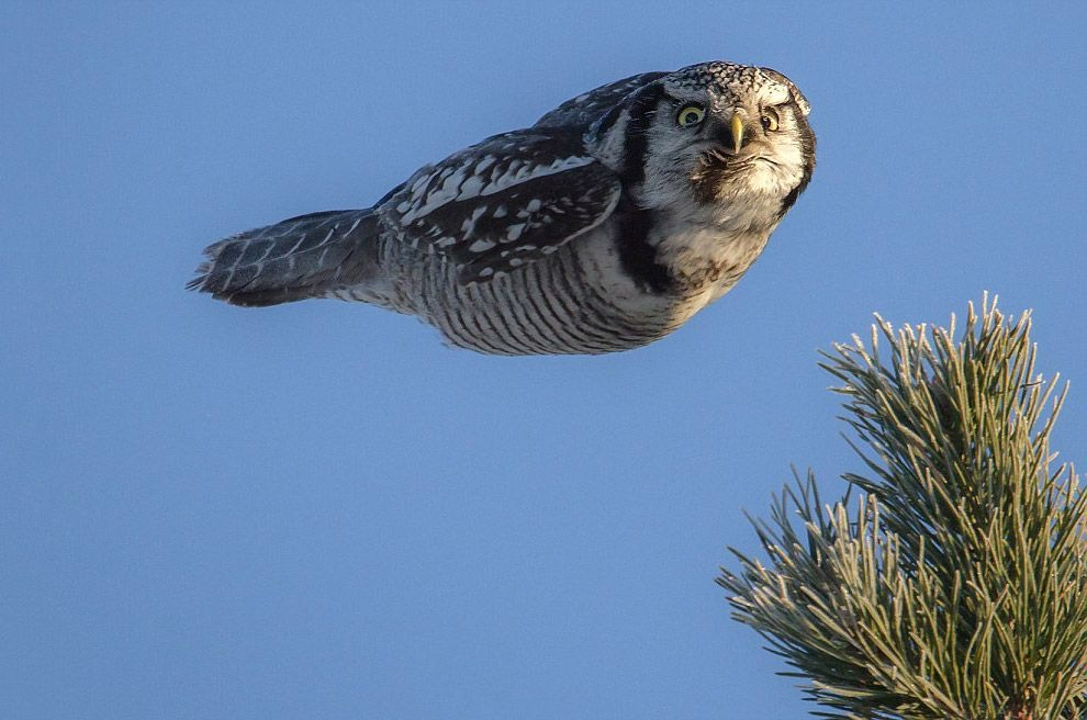 Помимо внешнего вида у дневных хищников ястребиная сова подсмотрела и тактику охоты. Прежде чем отыскать добычу, хищница ищет дерево, куст, жердь, столб. Забравшись на вершину, птица пожирает глазами каждый квадратный метр округи. Без этой процедуры она больше ничего пожирать не сможет. Ястребиная сова ищет не ушами, как другие совы, а глазами.