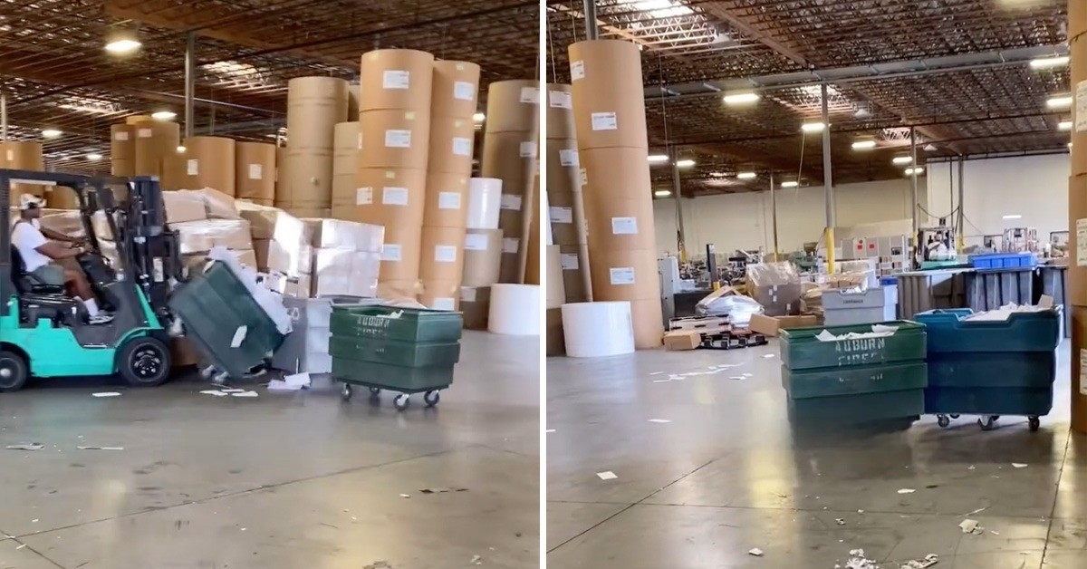 В США уволенный работник решил уйти красиво — устроил шоу на погрузчике, разнеся половину склада