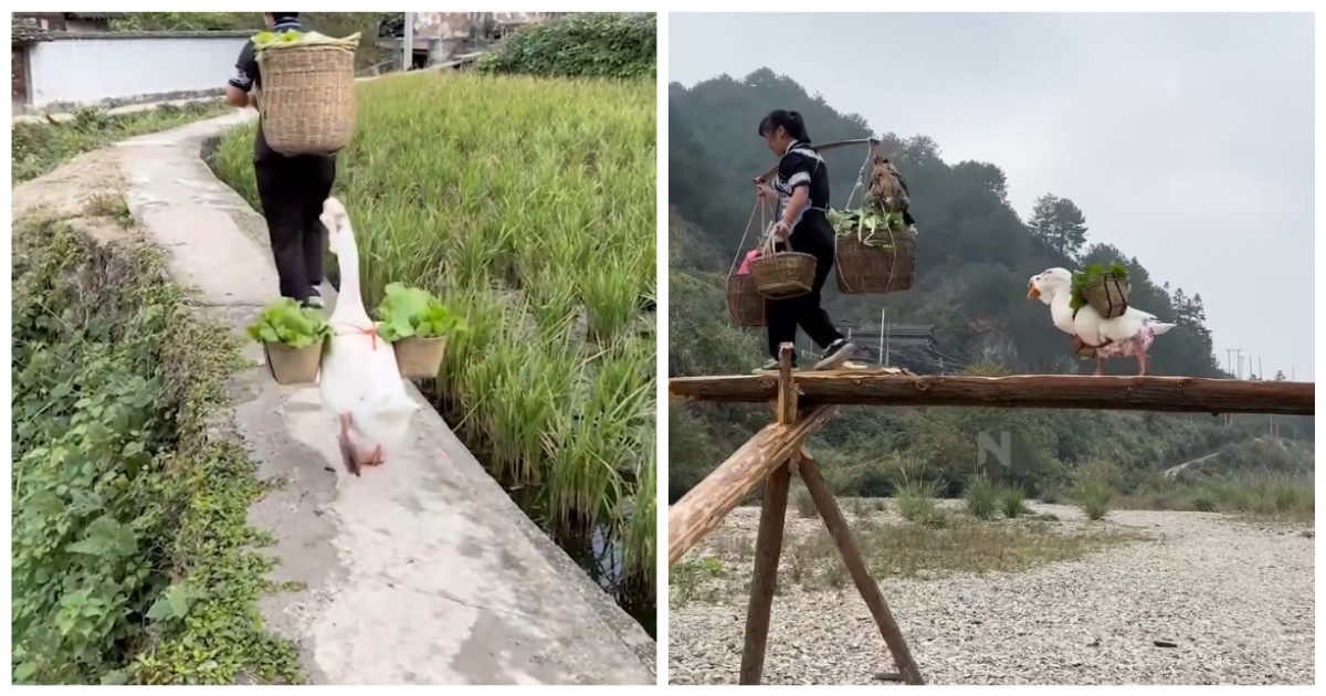 Гусь помогает своей хозяйке — Интересные новости