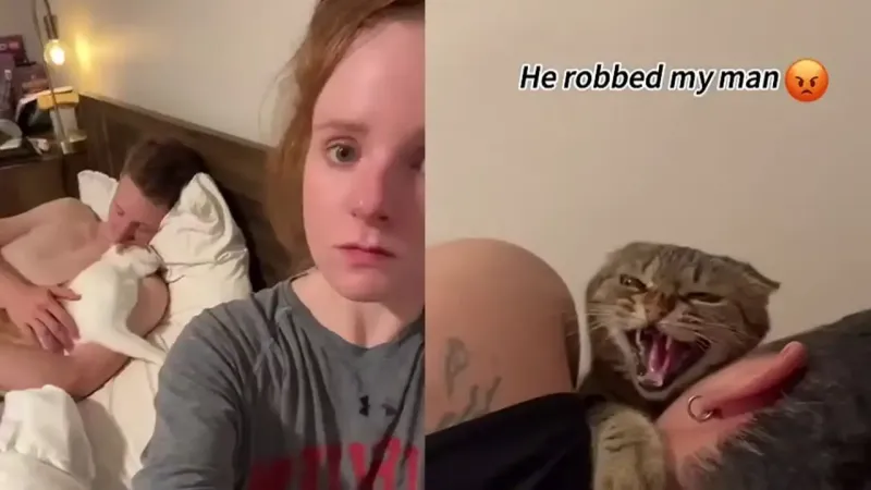 Девушки сняли на видео доказательства, что кошка запросто может увести мужчину