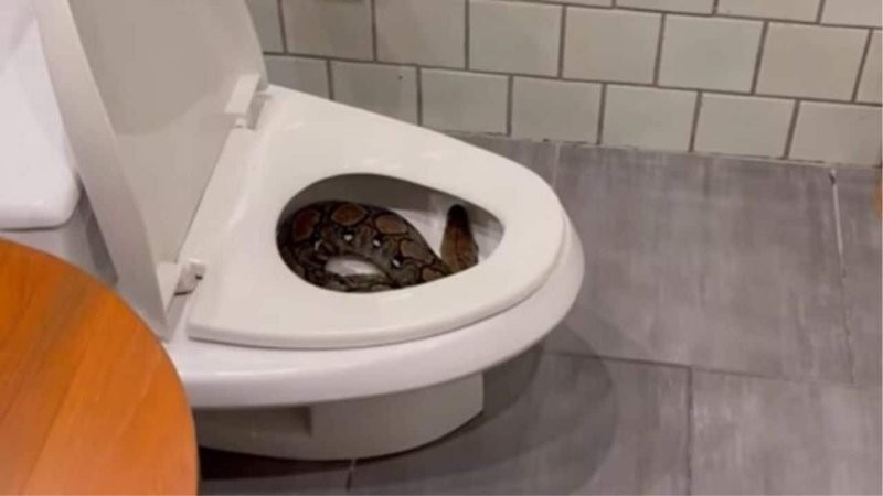 Таец выложил в посвященную змеям группу в социальной сети видео, на котором запечатлен огромный питон, свернувшийся клубком в чаше унитаза.