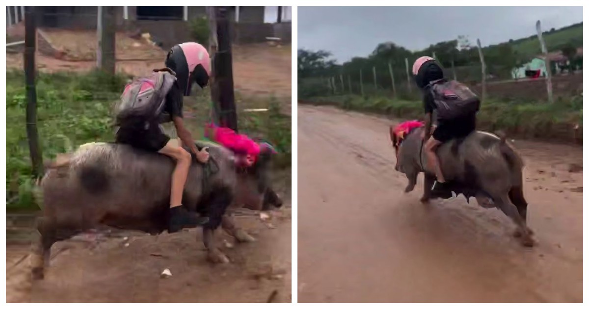 В одной из вьетнамских деревень, мальчик, восседая на спине свиньи, продемонстрировал свой необычный способ передвижения в школу. Юный школьник выбрал столь оригинальный «транспорт», чтобы добраться до места учебы.