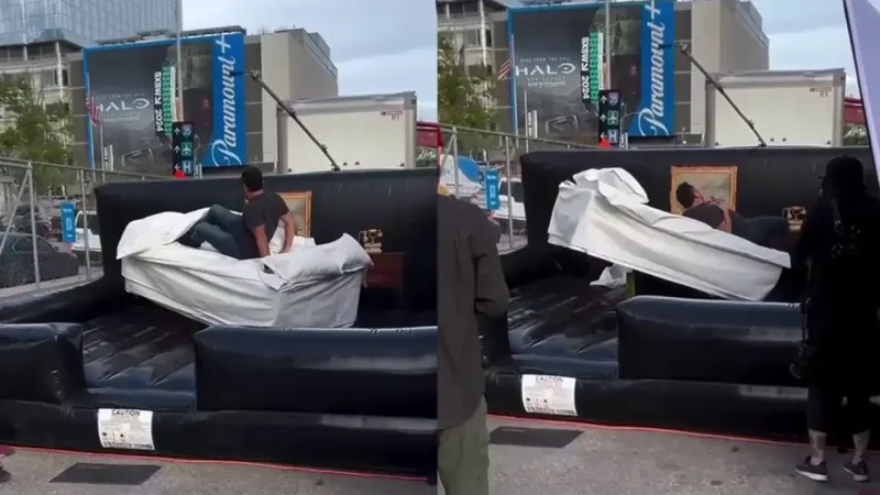 В США одна сеть отелей представила кровать-родео. Гостям предлагают испытание: удержаться на мебели полминуты, чтобы выиграть бесплатную ночь в любом номере отеля.