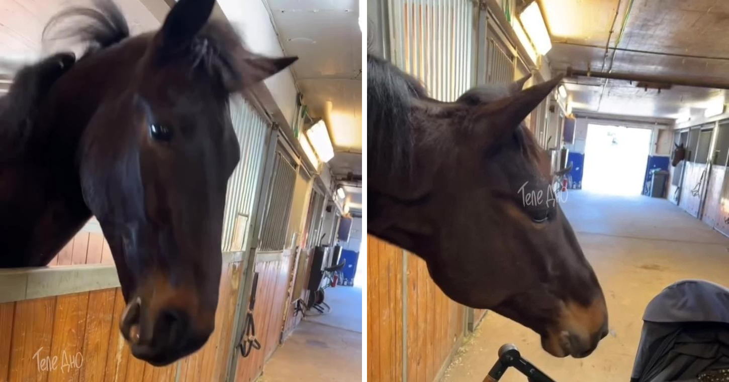 Животное вытягивает морду, кивает головой, показывает язык и корчит рожицы. Ребенок в ответ расплывается в улыбке.