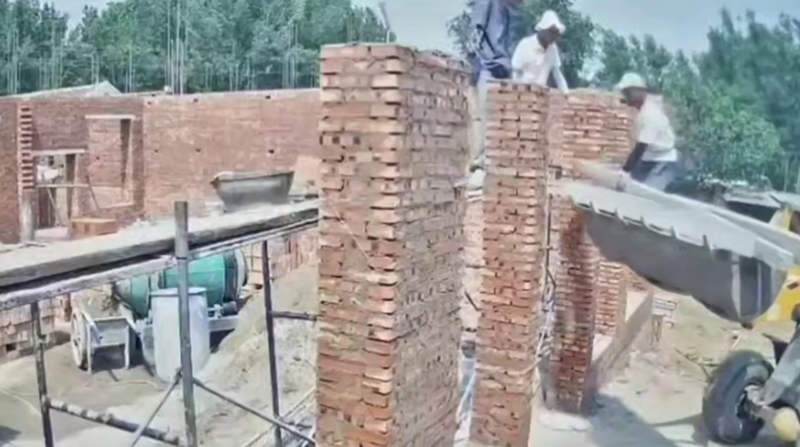 Словно титаны, вознесли рабочие кирпичные колонны, воплощая труд и усердие в каждом камне. Но злая ирония судьбы, воплощенная в неловком движении трактора, обрушила их, словно карточный домик.