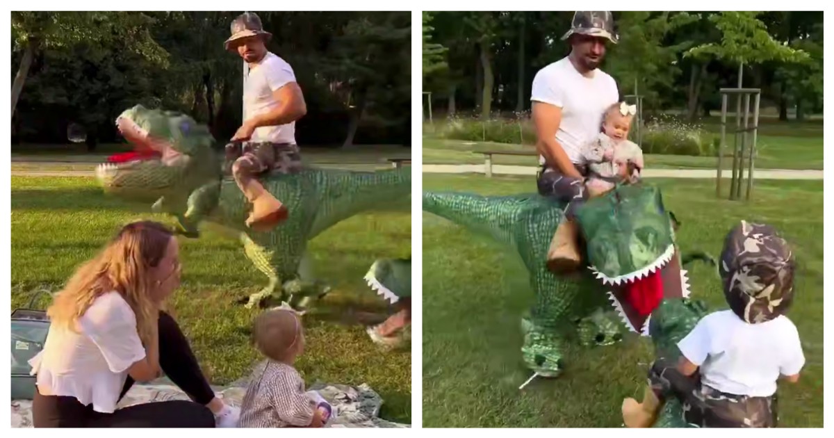 Папа и сын подняли настроение прохожим
