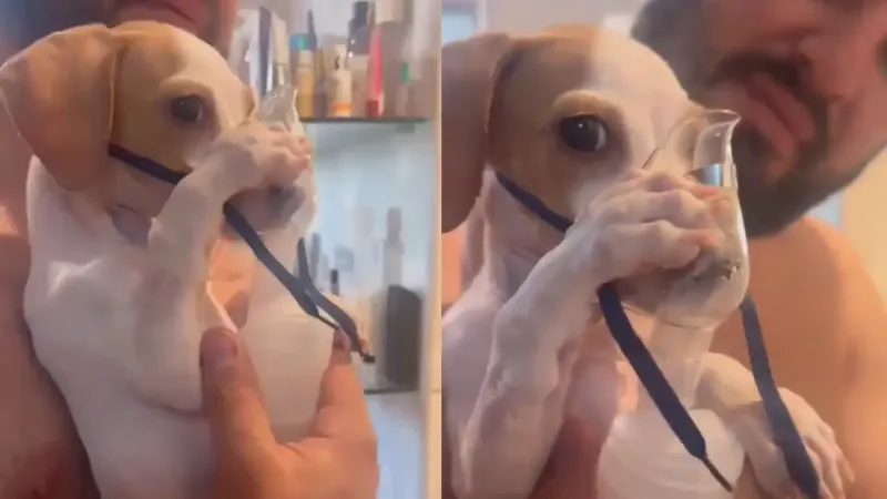 Пёсик с астмой держит маску для ингаляций, понимая, что это облегчает ему жизнь — Интересные новости