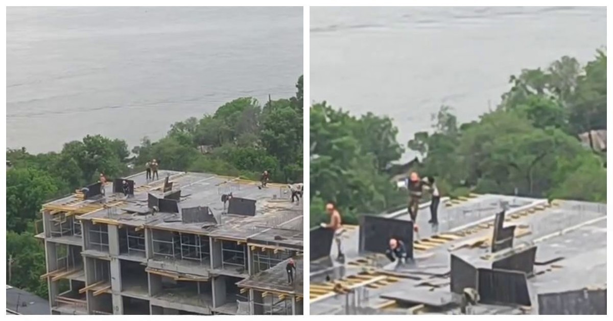 Спарринг двух рабочих на строящемся ЖК засняли в Хабаровске Борьба происходила на стройке будущего ЖК «Клубный дом». Рабочие, которые довольно долго кружились прямо на краю объекта, явно пренебрегли техникой безопасности