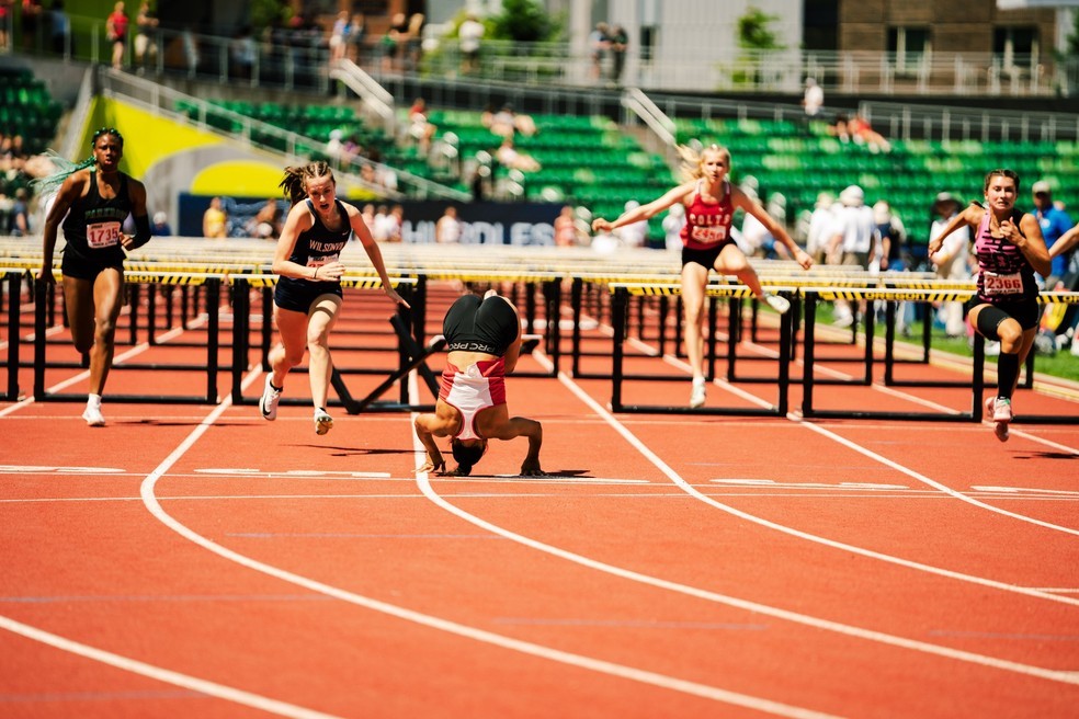 Спортсменка упала перед финишем, но всё равно победила