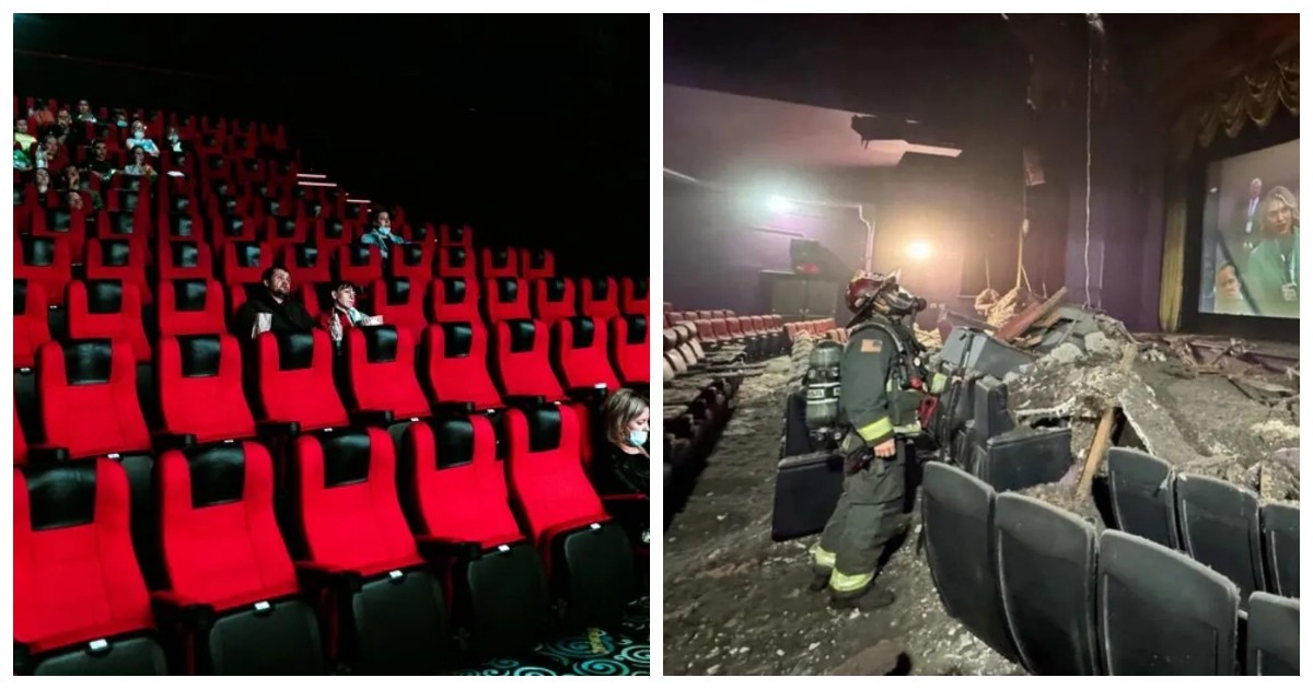 «Был очень громкий шум. Сначала мы подумали, что это часть фильма, потому что были увлечены просмотром. Но потом на меня упал огромный кусок потолка», — рассказала пострадавшая.