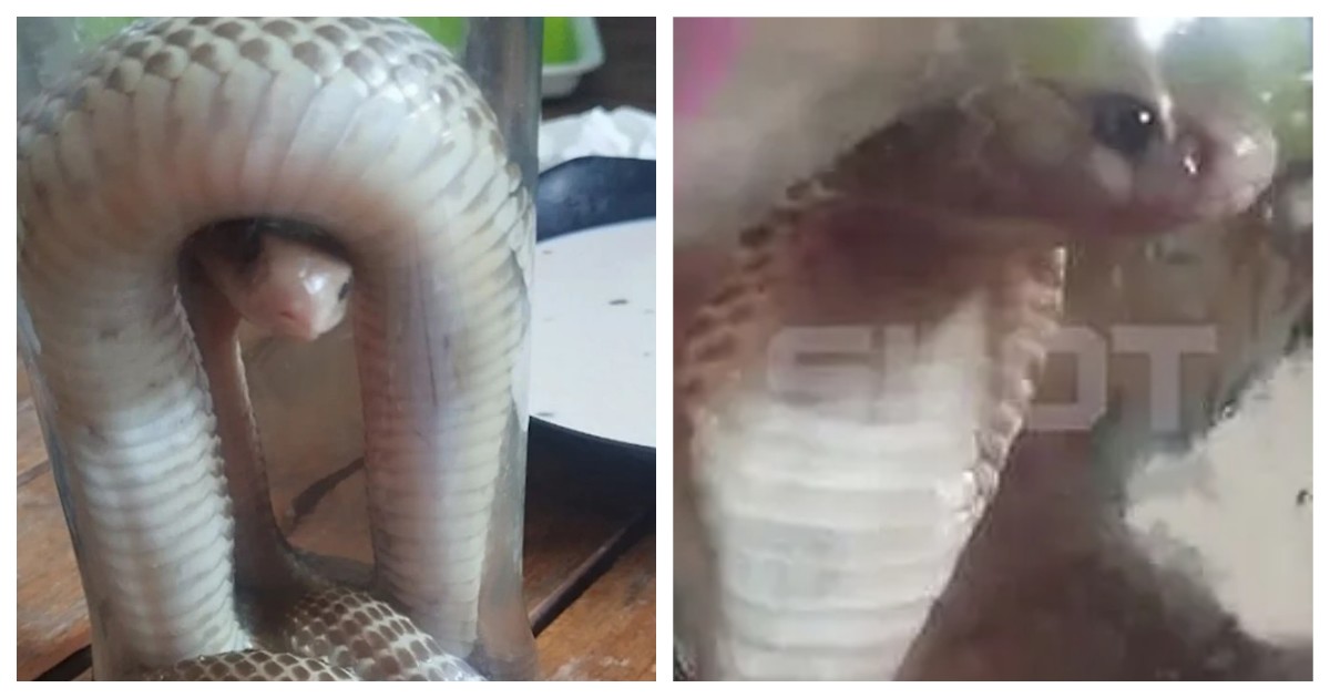 Мужчина заметил змею, придавил ее шваброй, схватил за голову и бросил в банку. По его словам, только когда кобра оказалась заперта, он задрожал всем телом.
