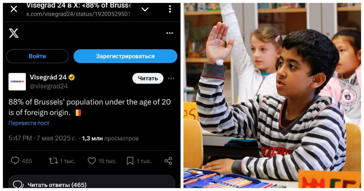Идем туда. 74,3% жителей Брюсселя иностранного происхождения. При этом 41,8% — неевропейского (в том числе 28,7% — африканского). Среди молодежи в возрасте до 18 лет 88% — иностранного происхождения, из них 57% — неевропейского (в том числе 42,4% — африканского).