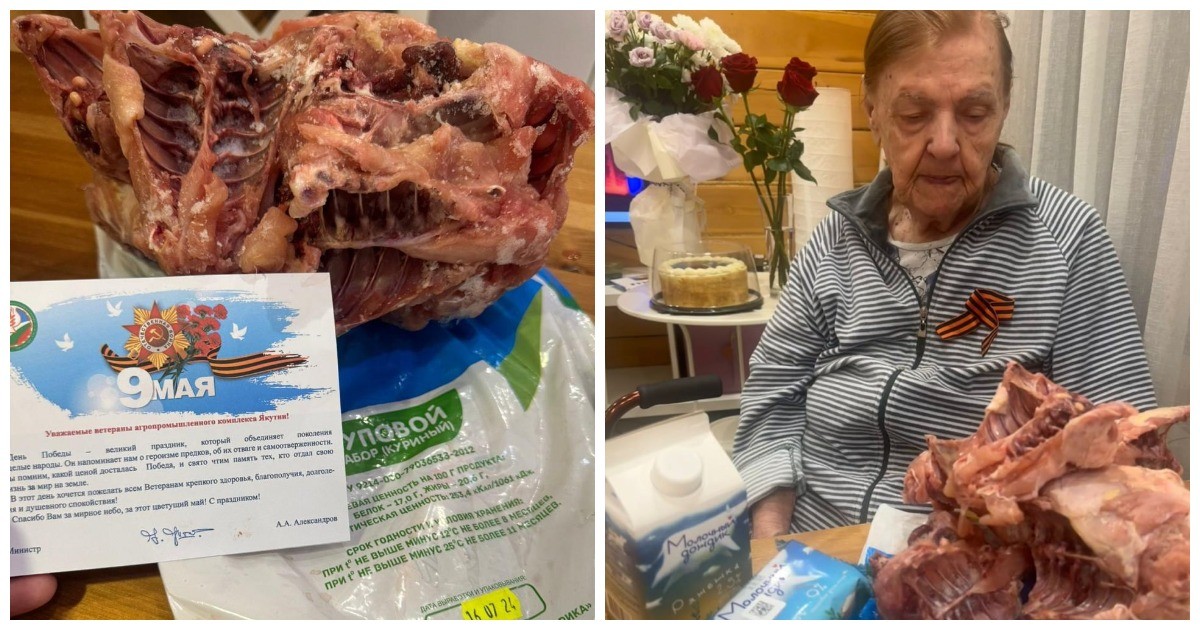 В Якутии к 80-летию Победы власти «щедро» одарили ветеранов и попали в скандал. Внучка ветерана ВОВ Таисии Хромовой пожаловалась в общественную организацию «Общероссийский народный фронт», рассказав, что её бабушка получила открытку, а также «суповой набор из костей курицы, изготовленный в июле 2024 года, и творожок с ряженкой». Как рассказала женщина, её бабушка «в силу возраста сильно не заморачивается, но ситуация оскорбительная».