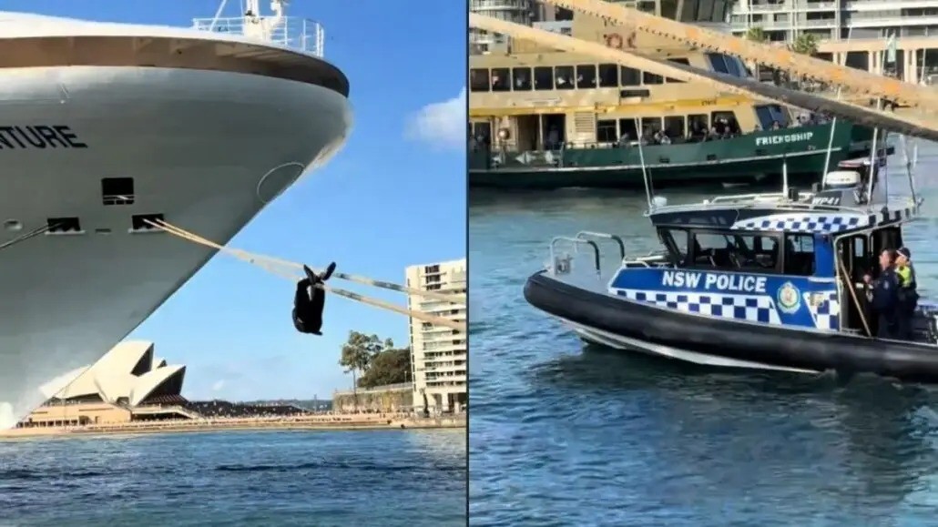 На кадрах видно, как безбилетник ползет по канату на круизное судно Carnival Adventure, пришвартованное на Круговой набережной Сиднея, Австралия. Тем временем оператор, снимая его, напевает песенку из мультсериала «Человек-паук».