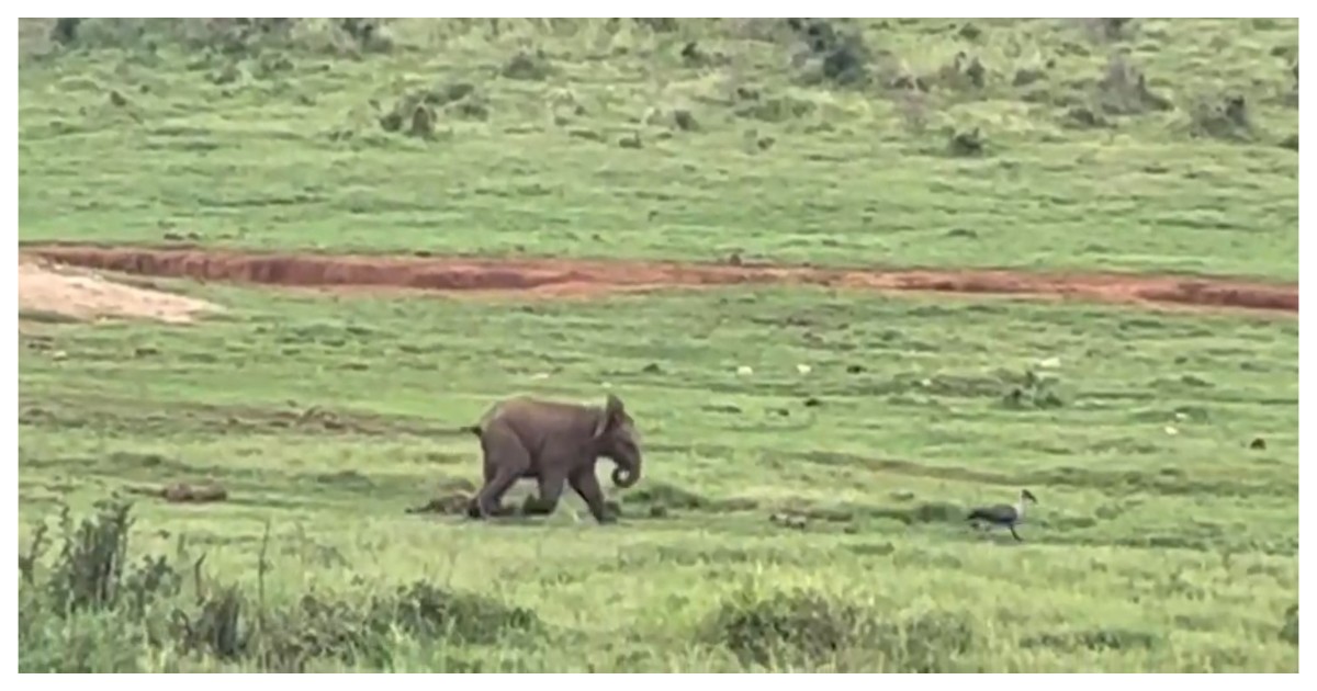 Слонёнок пустился в погоню за птицей — Интересные новости